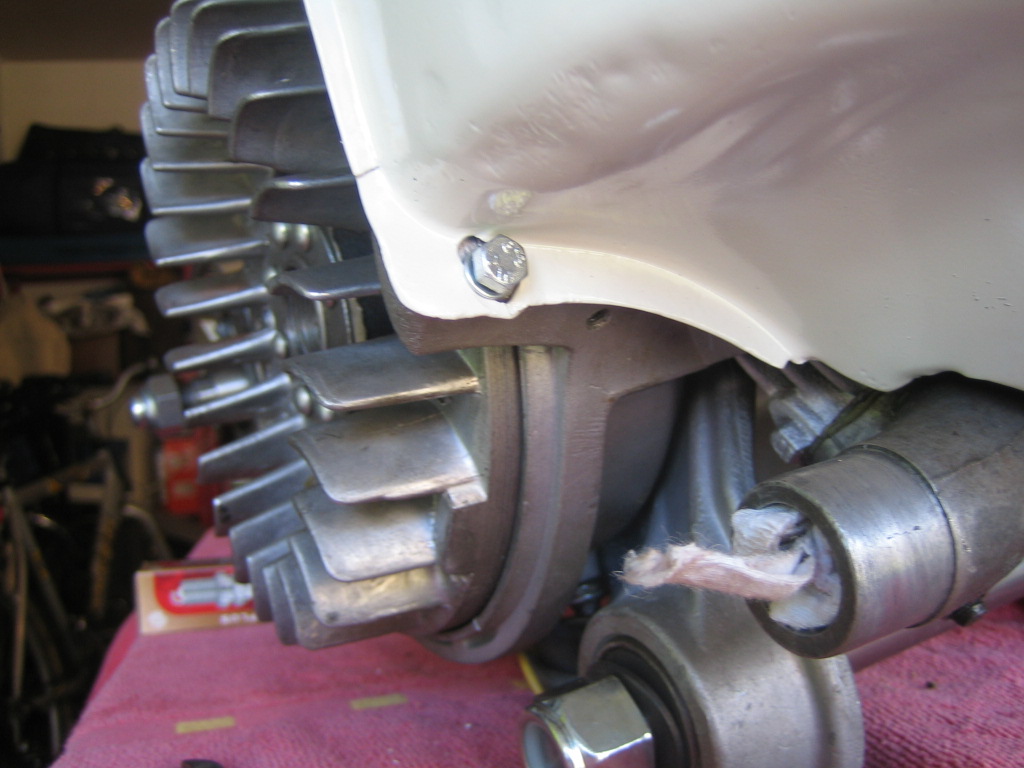Lambretta Restoration Engine Rebuilt Adding Cowlings Carb And Exhaust Downpipe : Here The Cowling Has Been Sprayed With The First Of Several Coats Of Sanding Primer.